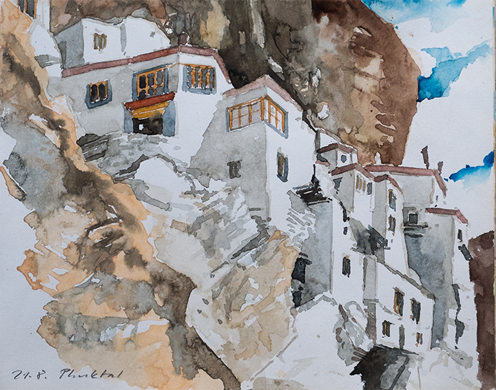 Auf Fernreisen mit Rucksack sind wenigstens ein SKIZZENBUCH und das "kleine Malbesteck" - Aquarellfarben und Bleistift - im Gepäck. Die Blätter im Skizzenbuch haben eher privaten Charakter und dokumentieren Eindrücke von Landschaft, Architektur und Menschen.
