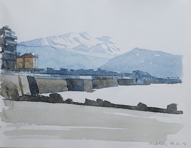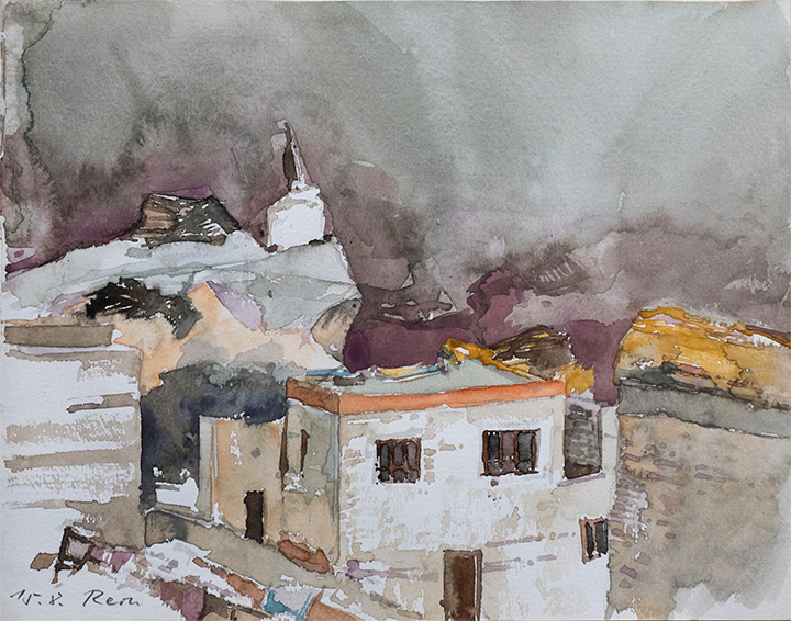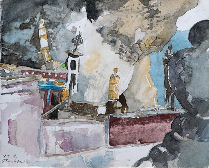 Auf Fernreisen mit Rucksack sind wenigstens ein SKIZZENBUCH und das "kleine Malbesteck" - Aquarellfarben und Bleistift - im Gepäck. Die Blätter im Skizzenbuch haben eher privaten Charakter und dokumentieren Eindrücke von Landschaft, Architektur und Menschen.